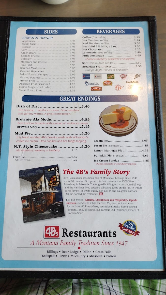 4B's Restaurant in Kalispell Menu (Update 2025)